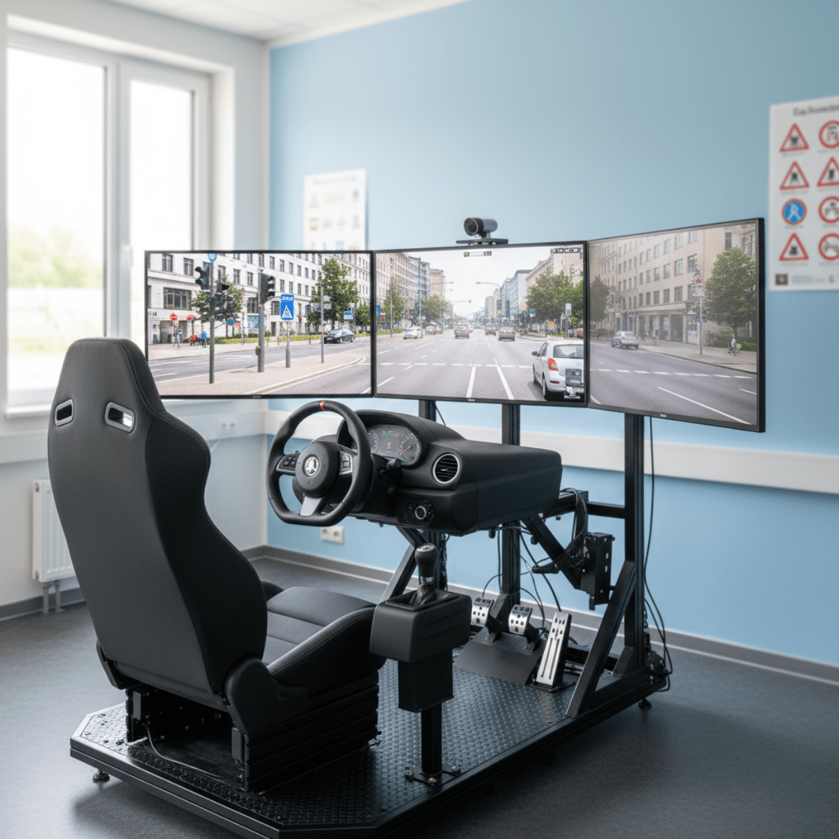 Wir erweitern unsere Fahrausbildung um einen modernen Fahrsimulator. Damit kannst du Verkehrssituationen realitätsnah üben, Abläufe verstehen und Sicherheit aufbauen – bevor du dich ans Steuer setzt. Ideal zum Einstieg, zum Vertiefen und um noch entspannter in die ersten Fahrstunden zu starten.